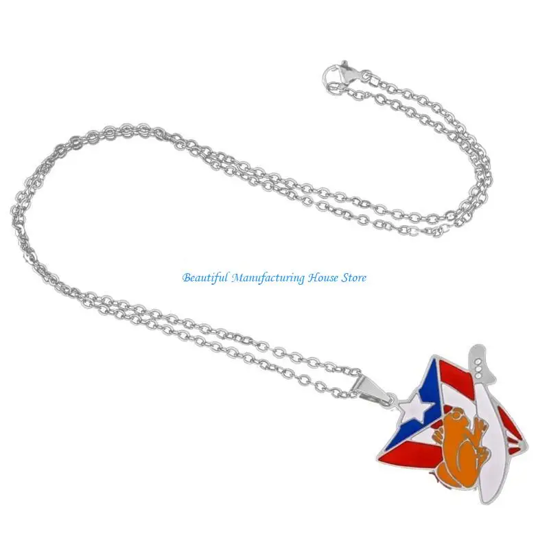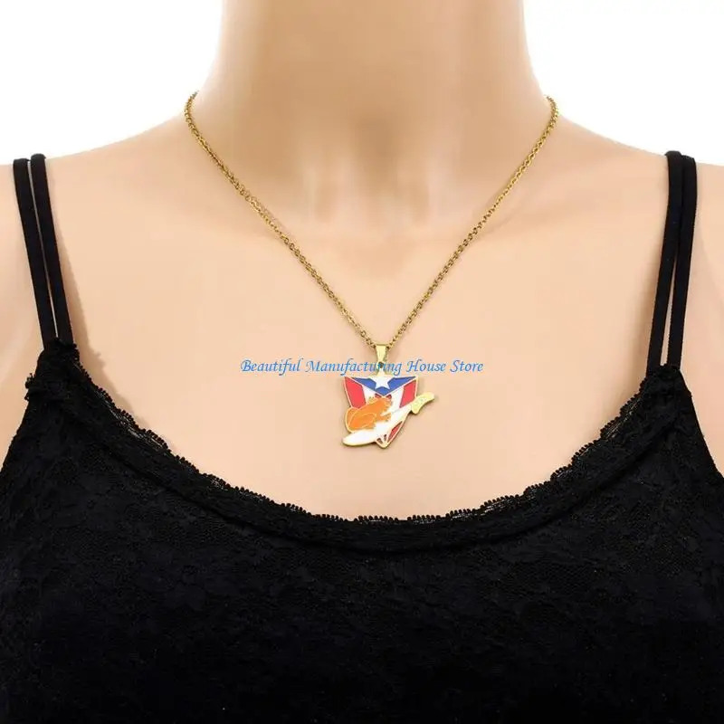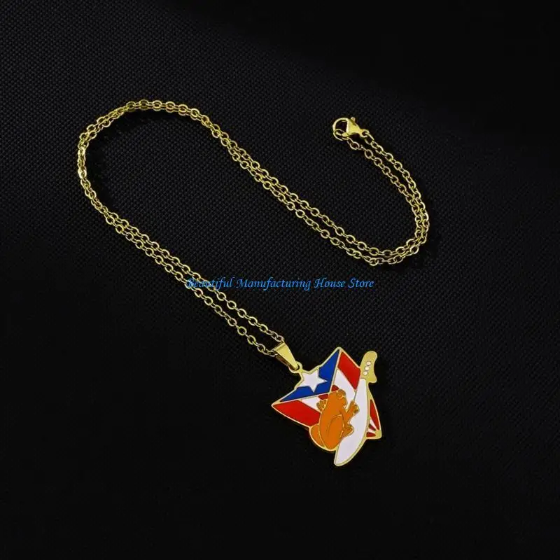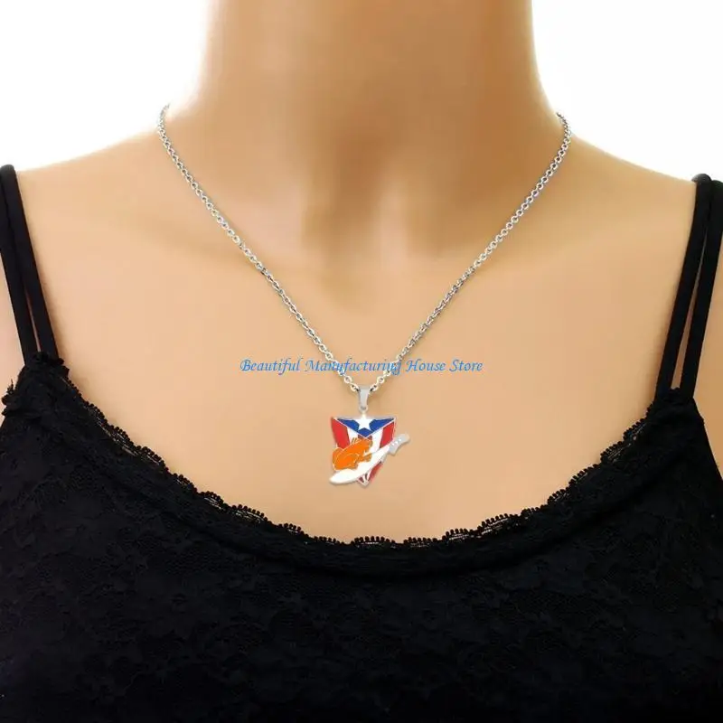 E56A Puerto Rico Flag Pendant Necklace Clavicle Chain Culture Necklace for Daily Wear